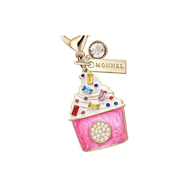 MONNEL MC433 Crystal Ice-cream Sundae Lobster Clasp Charm for Women with Velvet Bag (Pink,1 Piece)