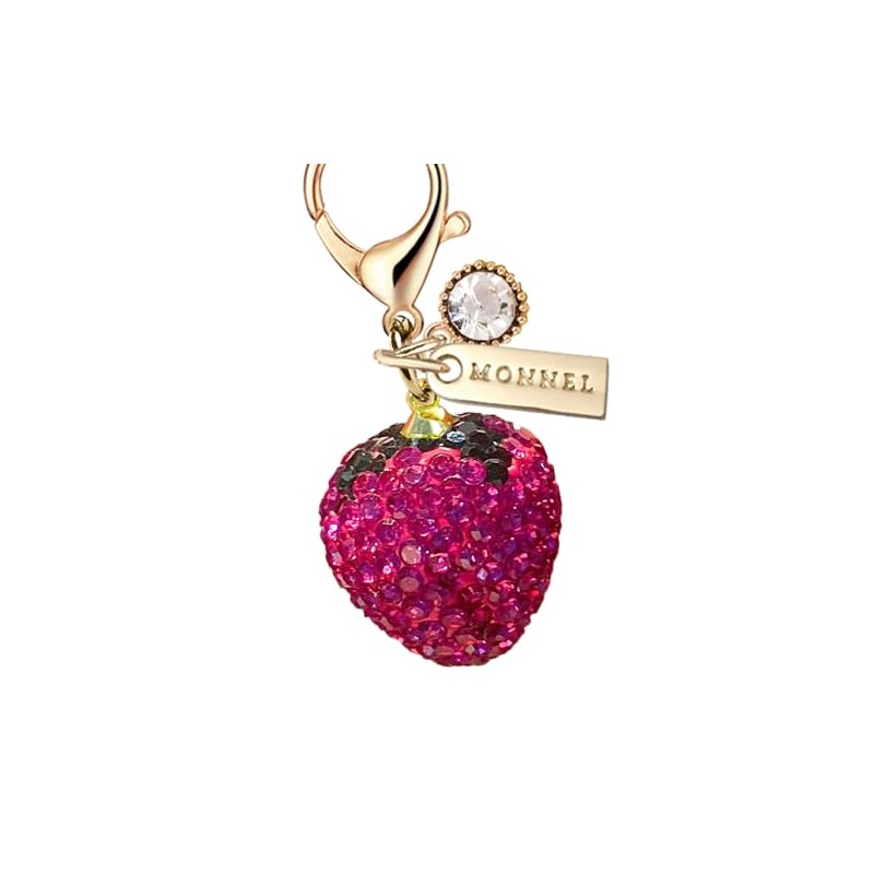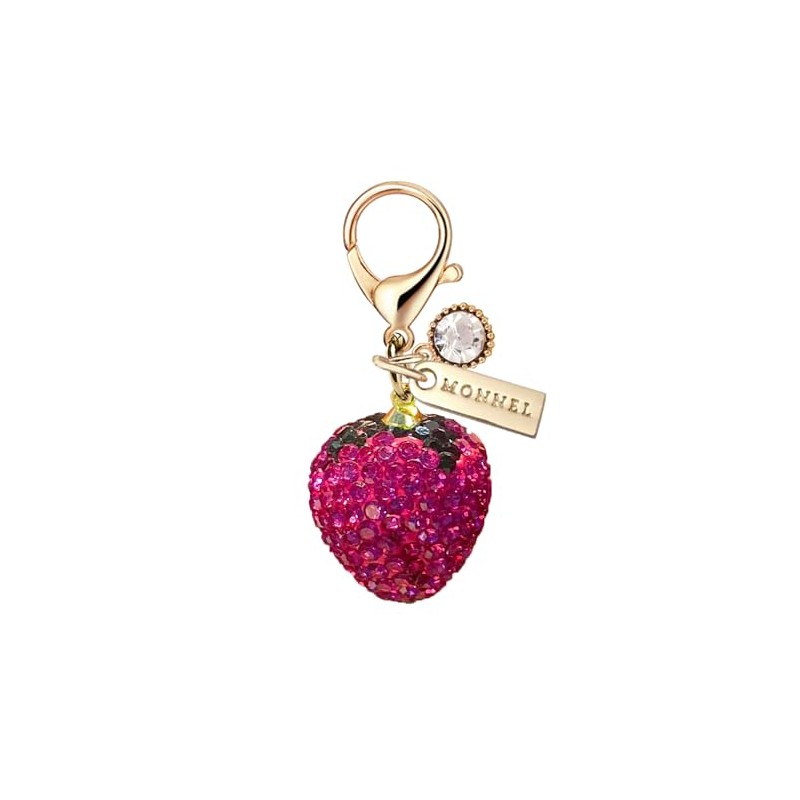 MONNEL MC502 Little Crystal 3D Strawberry Lobster Clasp Charm for Women with Velvet Bag (Rose Pink,1 Piece)