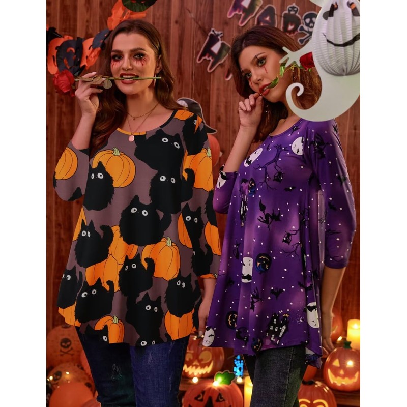 - Size: Plus size tunic tops for women are available in 1X/2X/3X/4X/5X, please check the womens Halloween shirts size chart in details before purchasing. Halloween tops for women are cute,funny, and perfect for spooky Halloween.
