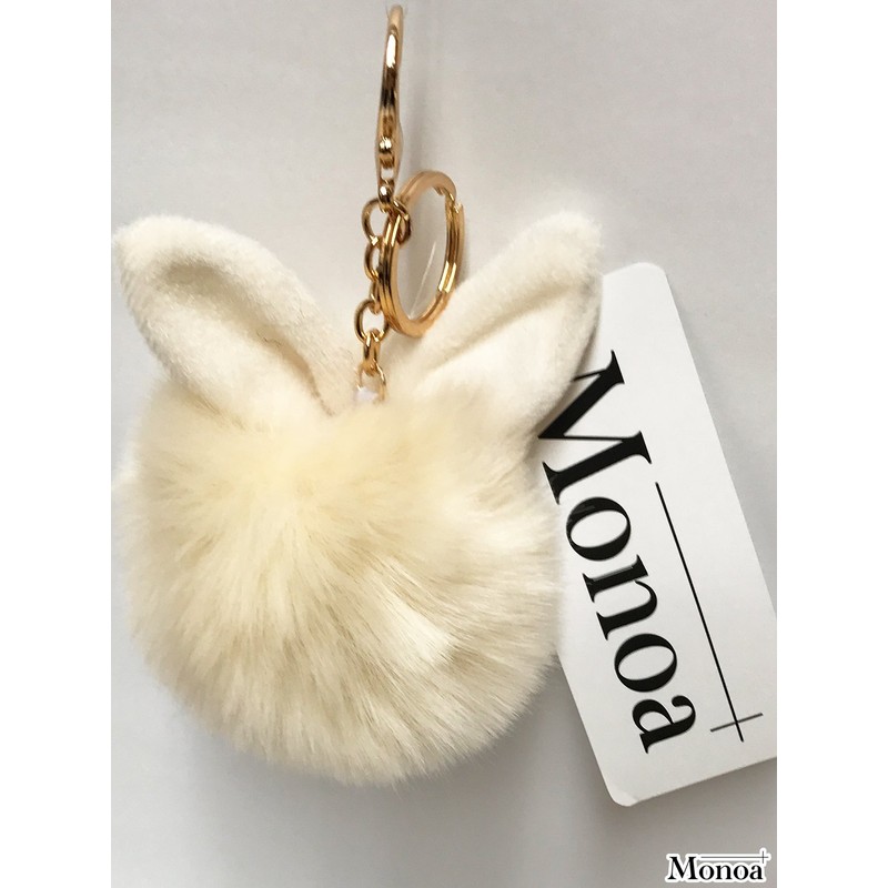 Monoa Women's Key Holder, Accessories, Cute, Rabbit Ears, Fake Fur Charm, Keyring, Strap, Accessory, beige