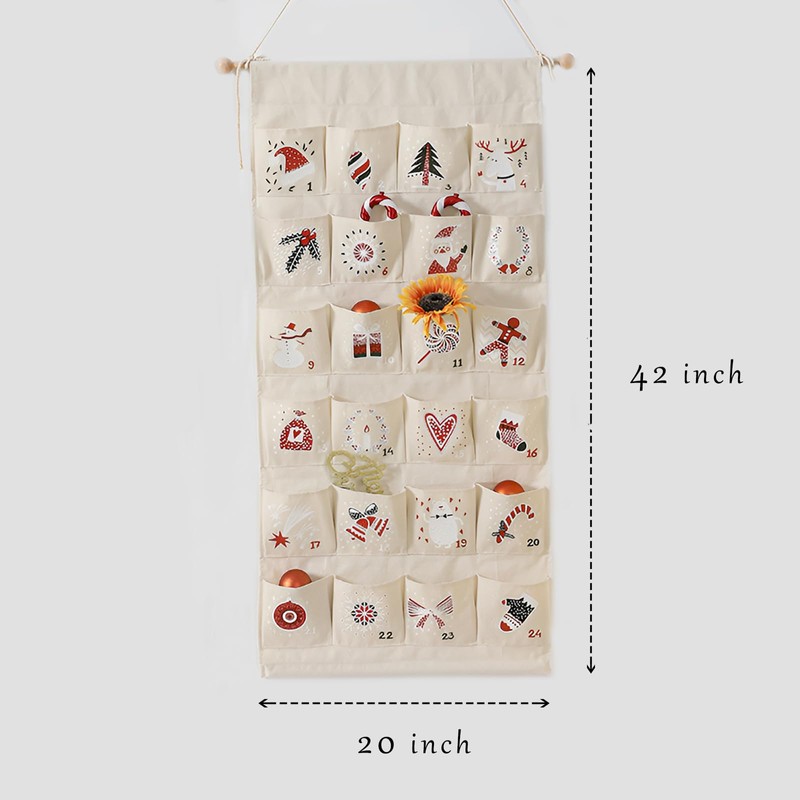 - Christmas Themed Pocket Design:Each pockets of the countdown advent calendar have an classic Xmas illustration and number and have the perfect size to pop a little gift or message,creating a magical moment each morning. Size of the pocket is 4.5" x 5"
