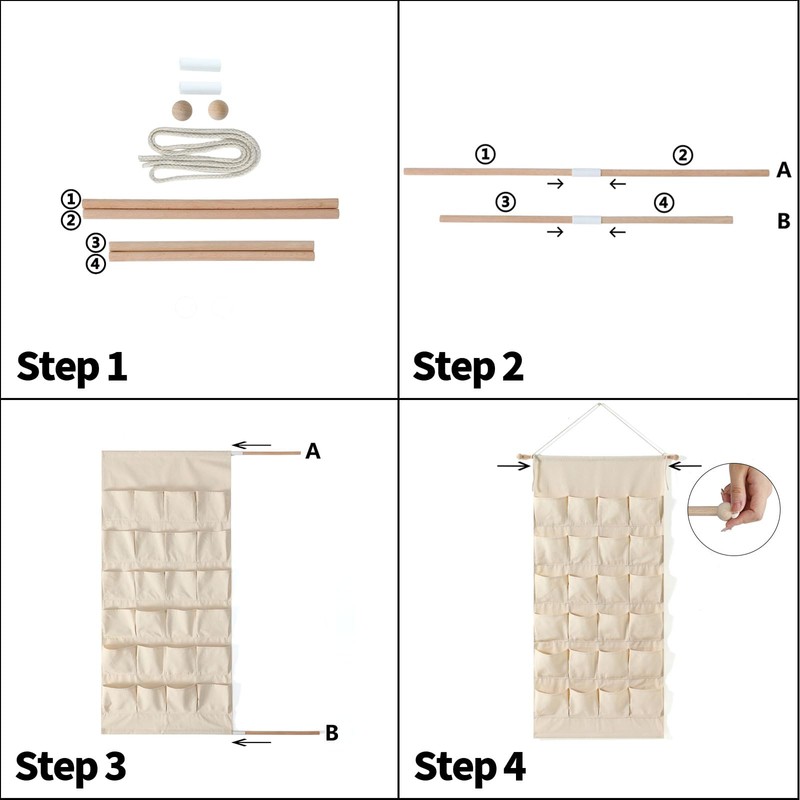 - Size and Packaging:Advent calendar measures 42" x 20".The package contains 4 wooden rods, 2 wooden balls, 2 wooden rods connector and a rope. 2 short wooden rods are combined by connector to form a long wooden rod