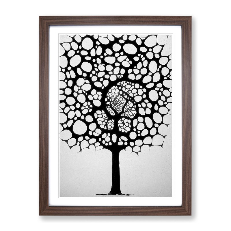 Monochrome Tree Art No.1 Framed Print for Living Room Bedroom Home Office Décor, Wall Art Picture Ready to Hang, Walnut A4 Frame (34 x 25 cm)