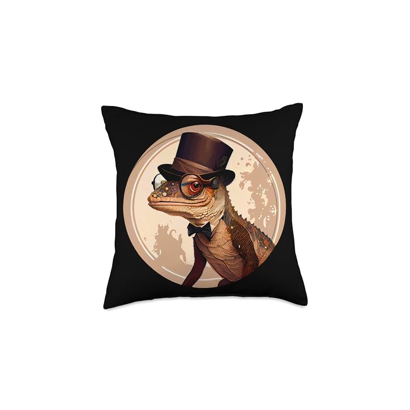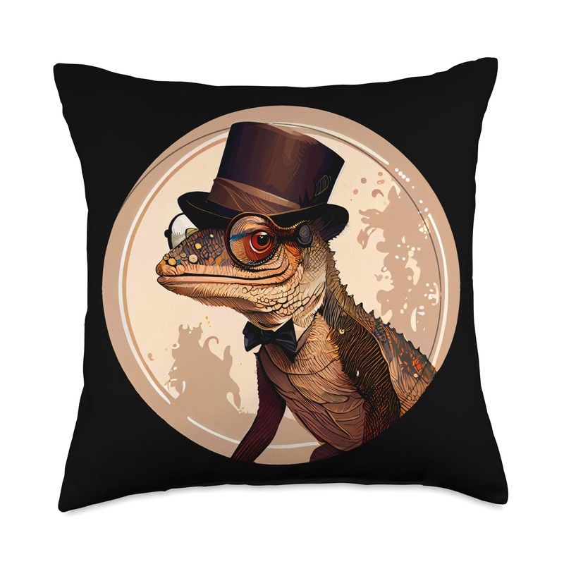 Monocle Wearing Lizard with Top Hat Design Throw Pillow