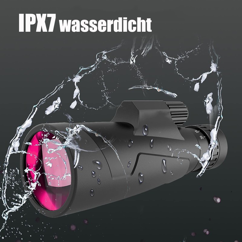 - Nitrogen filled/waterproof: IPX7 waterproof and anti-fog - The ergonomic design helps you focus quickly and accurately with one hand. This monocular is equipped with a nitrogen-filled, waterproof, anti-fog coating and O-ring seal of optical elements to prevent moisture, dust and dirt from the scope that can be used in all weather conditions