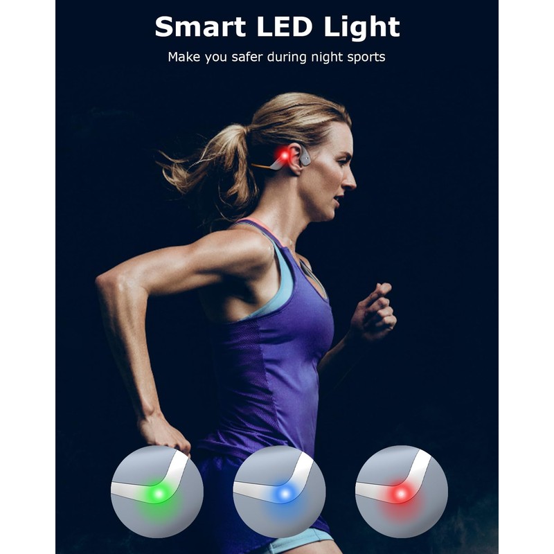 - Bone sound headphones: open ear headphones deliver premium sound through the cheekbones without having to insert earbuds into your ears, reducing pain or hearing damage. Simple and beautiful design, equipped with a unique intelligent light that is eye-catching and safe at night and makes your outdoor sports stylish and safe