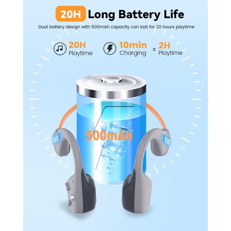 - Bluetooth 5.3 and long battery life: the bone sound headphones use the latest Bluetooth 5.3 chip. The transmission speed is faster and more stable. With a battery capacity of 500 mAh, you can listen to music and make calls continuously for 20 hours. You can enjoy music comfortably at any time