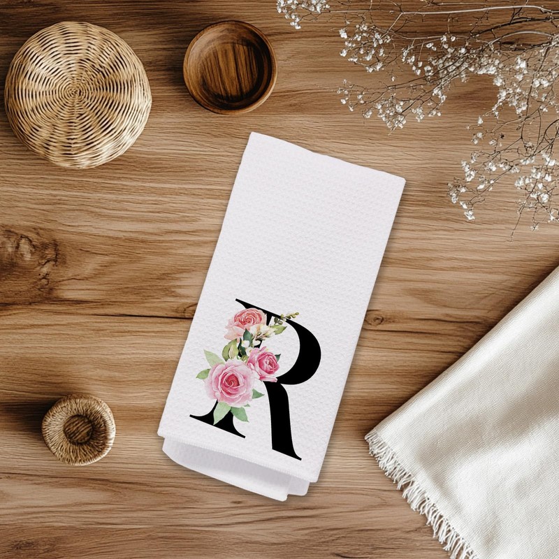 Monogrammed Towels - Initial Hand Towels for Bathroom, Monogram Hand Towels, Monogrammed Kitchen Towels with Intial R, R Initial Gifts for Women/Men/Girls, R Monogram Gifts(16 * 24in)