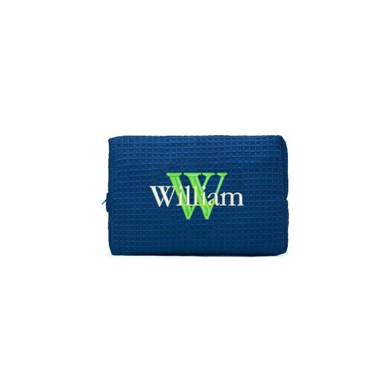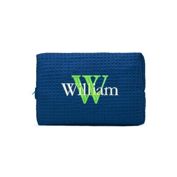Monogrammed Waffle Cosmetic Bag with Name and Initial (Navy Blue)