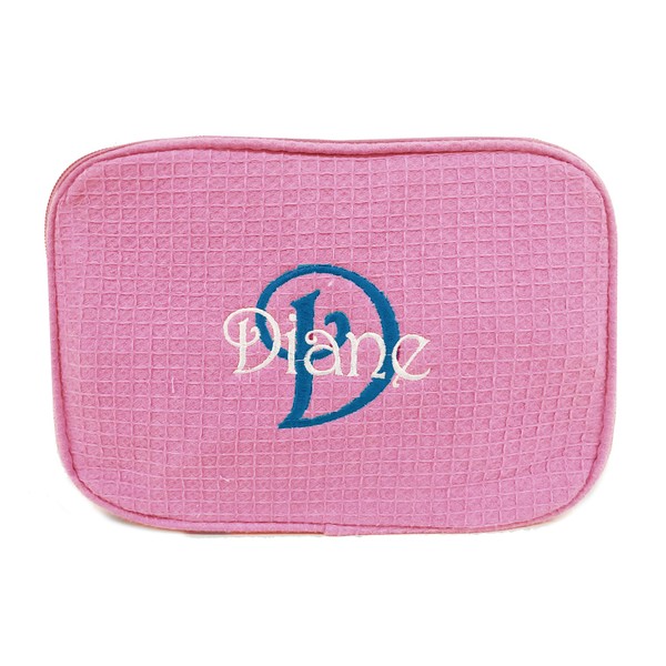 Monogrammed Waffle Cosmetic Bag with Name and Initial (Pink)