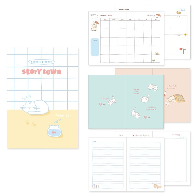 Monolike B6 Storytown Afternoon 6-Month Planner, Fishbowl & Cat, Monthly Plan, Weekly Plan, Scheduler