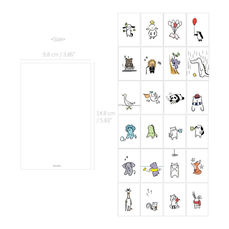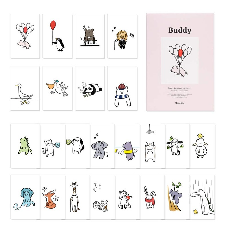 Monolike Buddy Single cards - mix 24 pack, unique and cute 24 animal Single cards