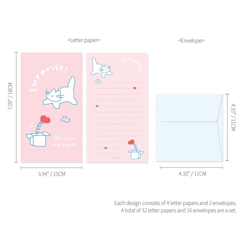 - Each design consists of 4 sheets and 2 envelopes. 16 envelopes total of 32 sheets