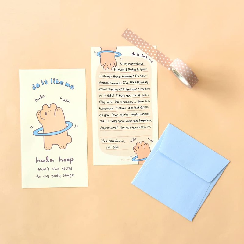 Monolike Story Town Afternoon Mini Stationery Notes + Envelopes, Set of 8 - Story Town Afternoon B Mini Letter Paper Set, 32 Pieces of Stationery Paper + 16 Envelopes