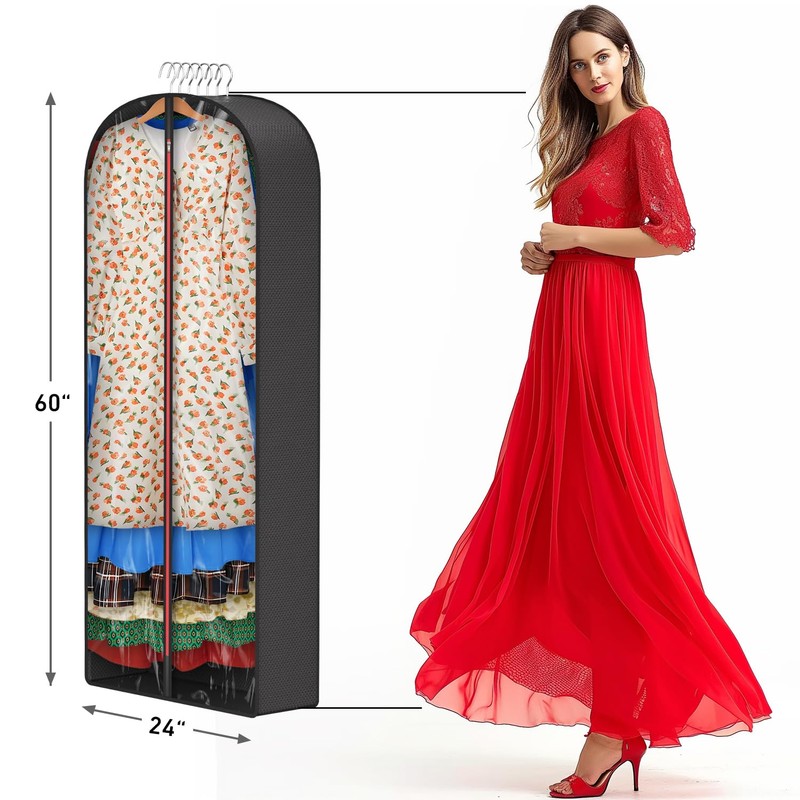 - 【6.5 inch Gusseted】: 60 inch x 24 inch x 6.5 inch, has wider and larger storage space than other garment bags, can hold 16 dresses, 9 sweaters, or 6 winter down jackets, so you can store more seasonal clothes, store your clothes quickly, protect and preserve large and heavy clothing such as leather coats and jackets.