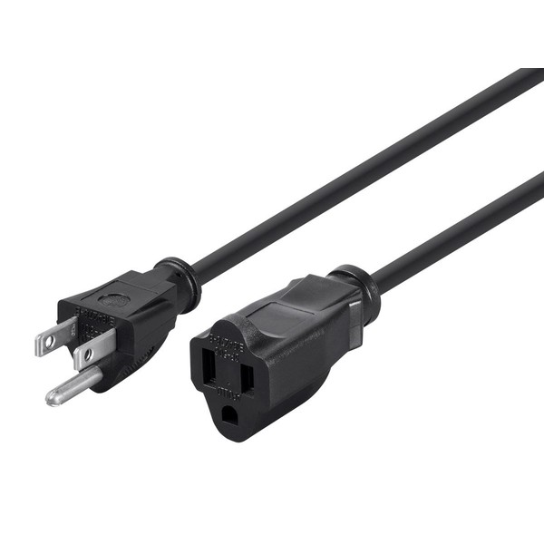 Monoprice 105296 1ft 16AWG Power Extension Cord Cable, 13A (NEMA 5-15P to NEMA 5-15R),Black - 13A