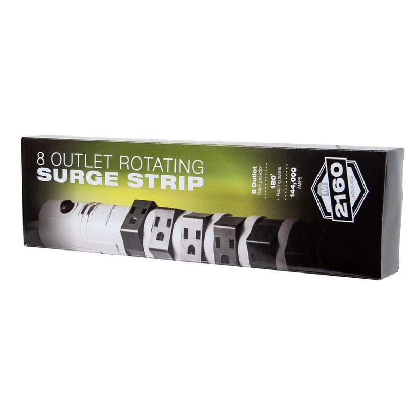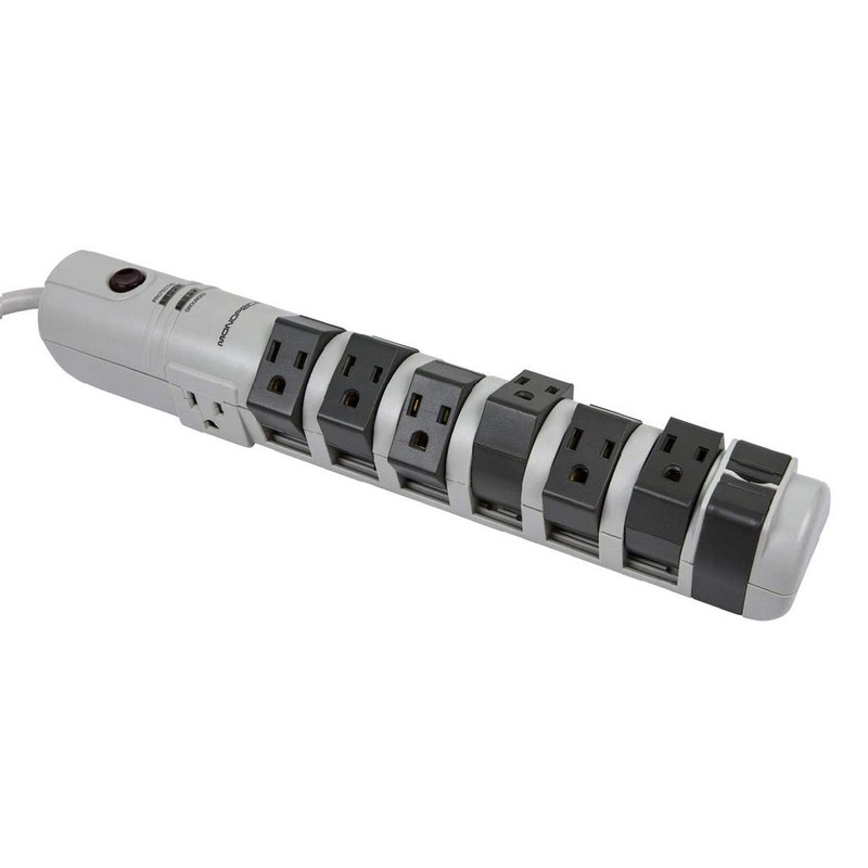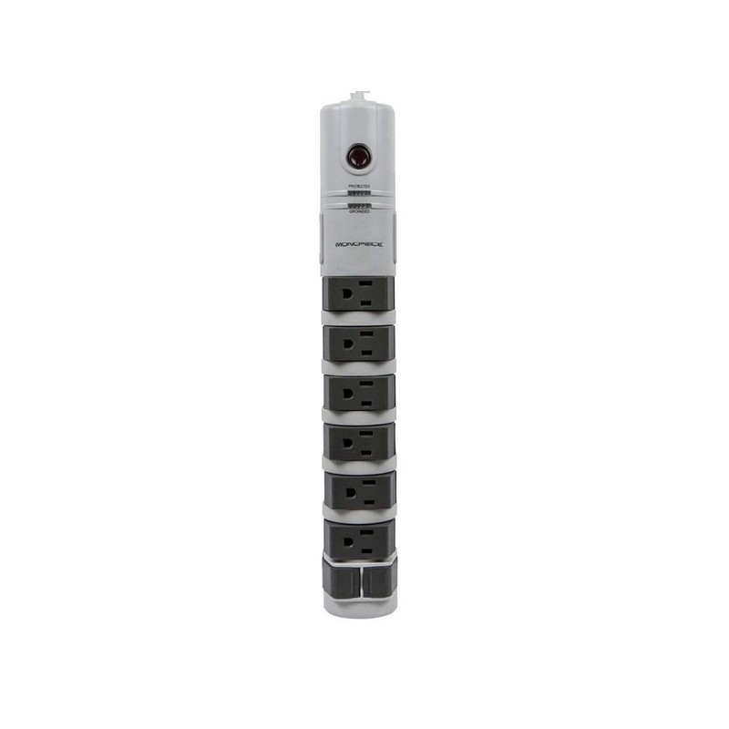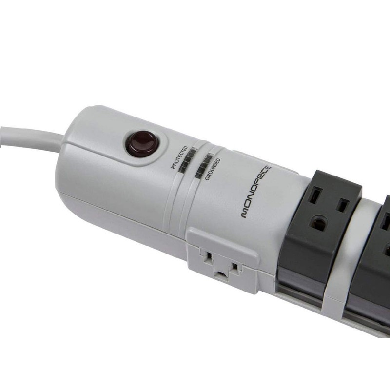 Monoprice 8 Outlet Rotating Surge Strip -Grey | UL Rated 2, 160 Joules with Grounded and Protected Light Indicator (111146) Gray