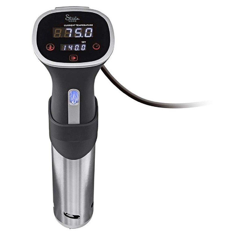 Cook food to perfection using the Strata home sous vide immersion cooker! Sous vide cooking is one of the hottest new trends in food preparation. Food is sealed into a plastic bag, which is then placed in a bath of water, which is then heated and circulated by the cooker. The result is food that is juicier and more tender, with all the nutrients, which are often lost from ordinary cooking methods. The LED screen makes it easy to set the cooking temperature and time so you can cook your favorite foods to perfection! Adjustable clamp: the sous vide cooker includes an adjustable clamp, so you can attach it to a wide variety of cooking pots from 2. 6 to 4. 0 gallons capacity. Digital LED touch screen: The bright and easy to read LED touch screen allows you to easily adjust the cooking temperature and time. You can start or pause cooking by touching the start/pause button in the middle. Easy to clean: the cooker sits in a bath of hot water and never comes into direct contact with the food, so cleanup is a breeze. Simply throw the stainless steel pump housing and water Cap into a dishwasher, then reassemble the cooker when the parts have dried.