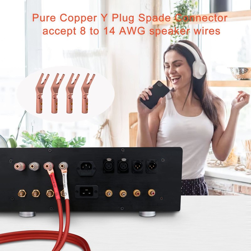 - 【Screw Locking Design】The Monosaudio y spade plug has double screw locking, speaker spade connector no soldering.Simple operation, install and play.