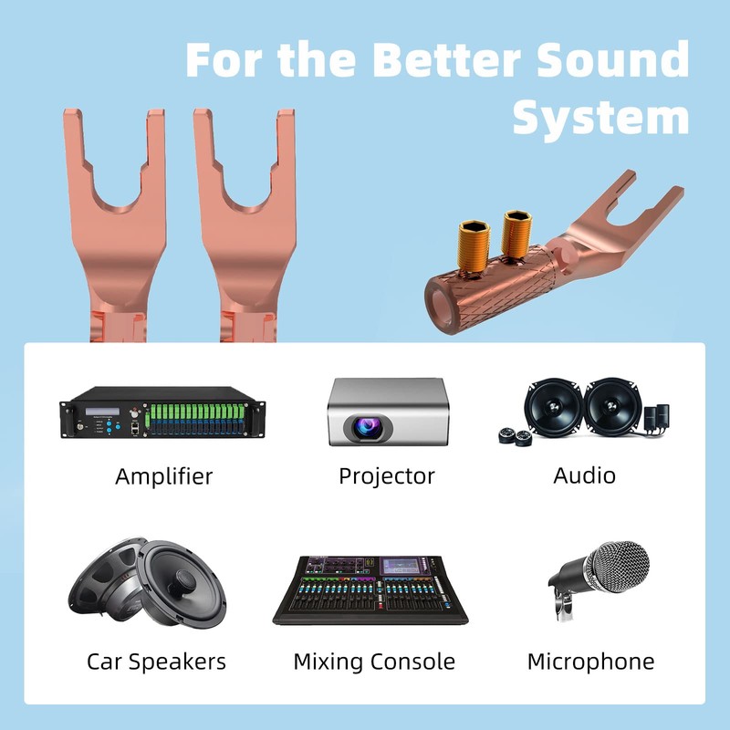 - 【Pure Copper Conductor】The Monosaudio speaker spade connectors are made of high quality 99.998% Pure Copper Conductor material, durable, corrosion resistant, stable performance, long service life.