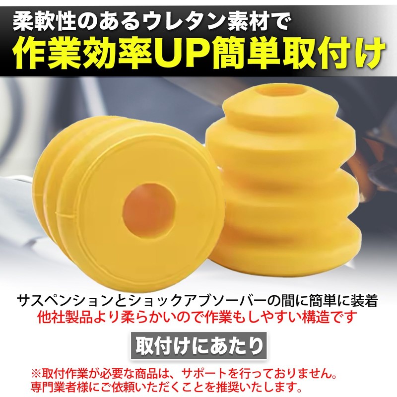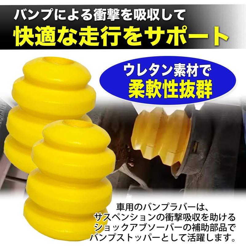- Comfortable support for daily riding: By reducing vibrations caused by the bumps during the ride, the comfort of the car is improved. The urethane material provides a secure support for suspension and shock absorbers while acting as a bump stop. Instructions are not included. As this is an overseas product, there may be burrs, fine scratches, or uneven colors. Depending on your monitor settings, there may be slight differences in the appearance of the product