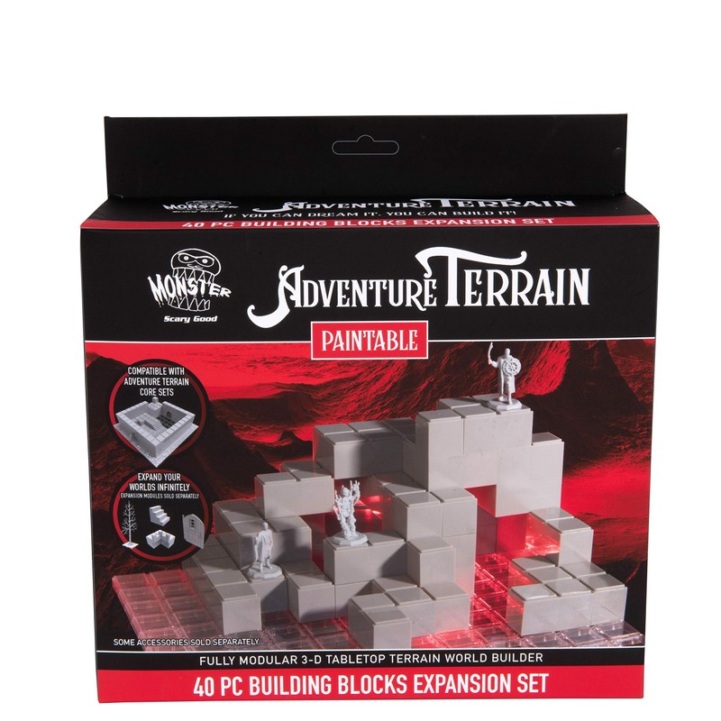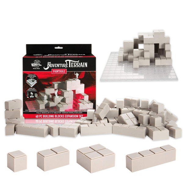 Monster Adventure Terrain - 40pc Paintable Stackable Building Block Expansion Set - Fully Modular 3-D Tabletop World Builder Compatible with Pathfinder D&D, and Most RPGs ...