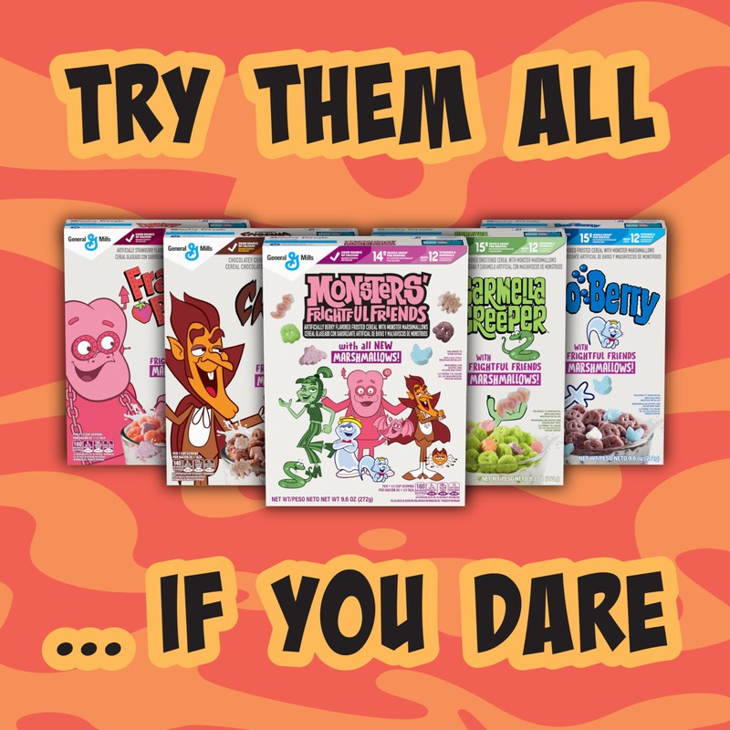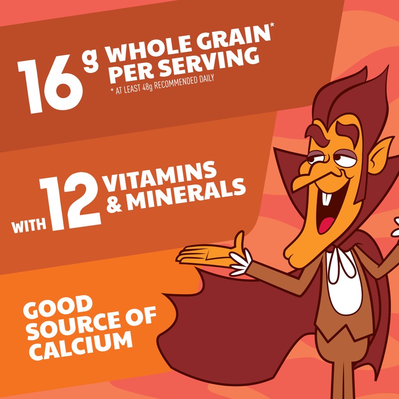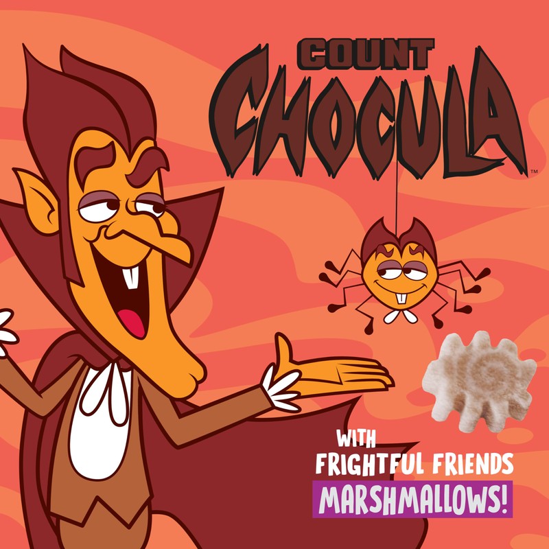 Count Chocula debuted in 1971, the first of a new line of so called Monster Cereals i.e., cereals named after the monster characters who starred in the TV commercials that advertised them. Frankenberry followed later that year, then Boo Berry and Fruit Brute in 1973, and finally Yummy Mummy (not officially a part of the line) in 1987. Choc was not just the first, but also the most popular of the bunch.