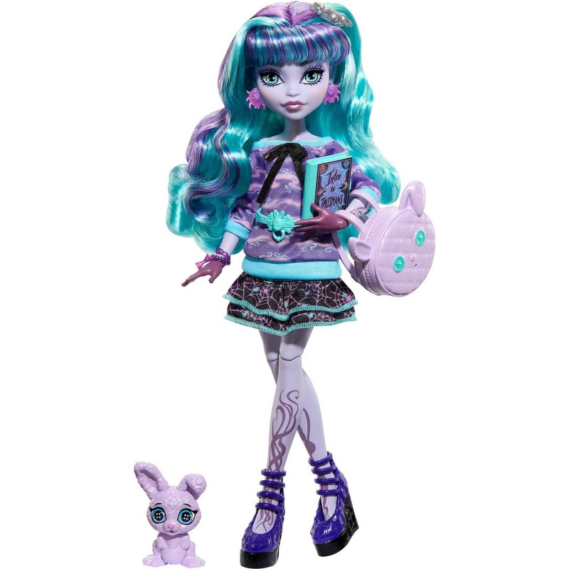 Monster High Creepover Party Doll, Twyla with Pet Bunny Dustin, Sleepover Clothes & Accessories like Hoodie, Book & Backpack