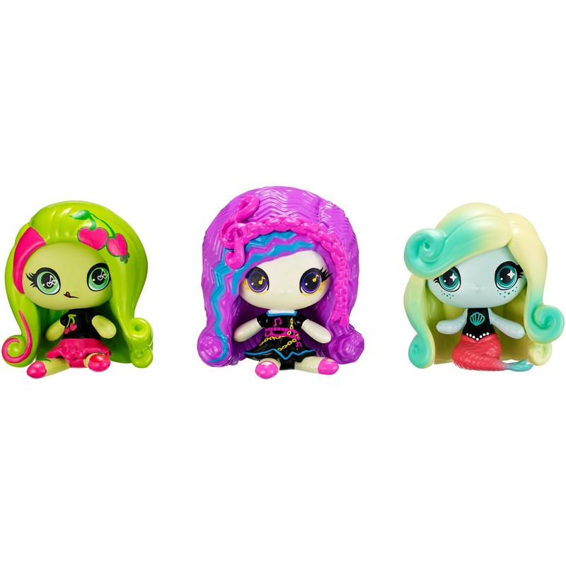 The Monster High mini collectible figures are monster cute -- so cute, you'll want to collect them all! And with three mini figures in each of these packs -- one of which is exclusive and found nowhere else -- your collection instantly grows! Each small figure is recognizable through signature styles, iconic elements and monsterrific details. Unique outfits are clawesome and dramatic hairstyles flawesome! Plus, a mix of themes within each three-pack of mini figures means you can build your collection in all sorts of ways. Look for favorite characters, entertainment collections and unique Monster High themes. Each three-pack includes an exclusive character found nowhere else! Find a favorite, focus on a theme or collect them all! Includes three Monster High mini figures. Each pack is sold separately, subject to availability. Colors and decorations may vary.