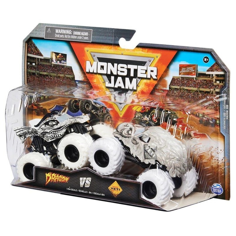 - 2 OFFICIAL MONSTER JAM TRUCKS: Create your own epic Monster Jam showdowns with the 1:64 scale die-cast 2-Pack! Each 2-Pack features the most popular and coveted trucks, ready to face-off!