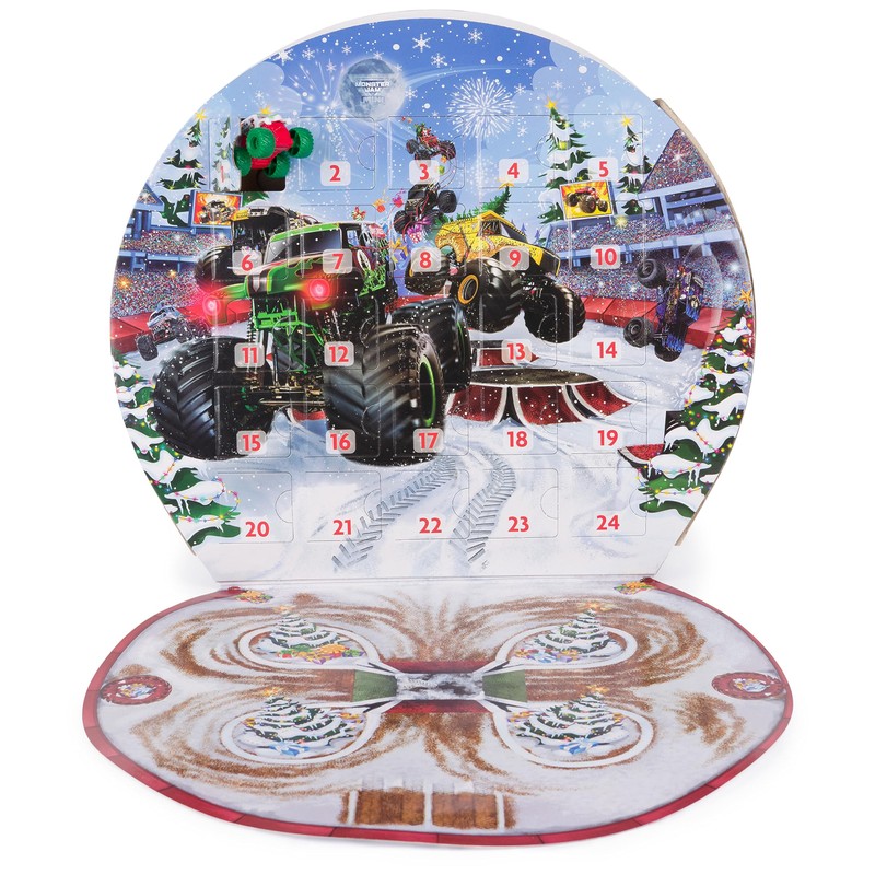 - GIFTABLE ADVENT CALENDAR: open your calendar and set up your mini–Monster Jam course on the built-in play area to recreate the action at home. Kids will love this Christmas gift