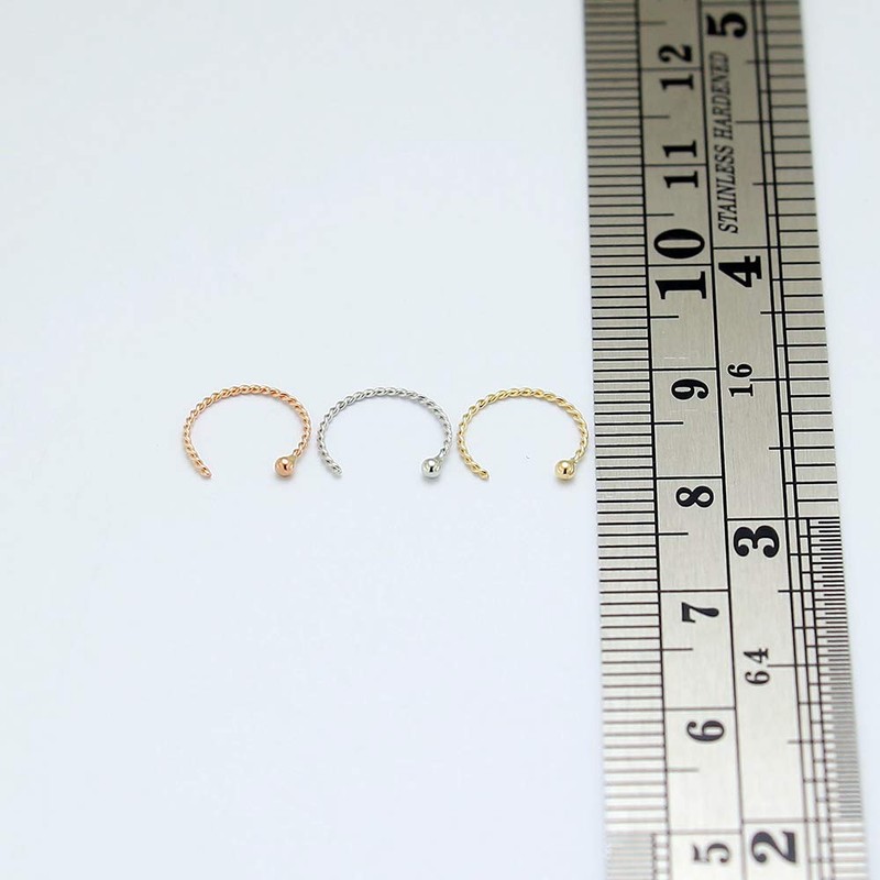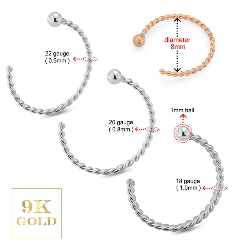 Monster Piercing 9K Gold Nose Ring Nose Piercing 9K Gold 22 Gauge - 8 mm Diameter Open Nose Ring Twisted Rope Nose Piercing Women Men, 9K solid gold