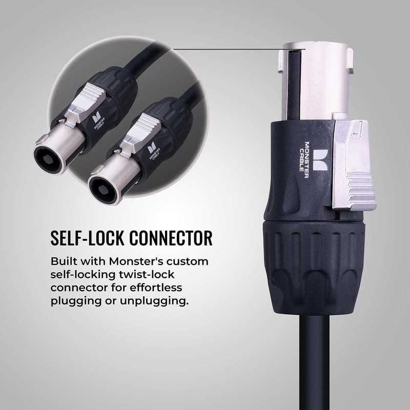• SELF-LOCK CONNECTOR: Features Monster's custom self-locking twist-lock connector for secure plugging or unplugging even on the road
