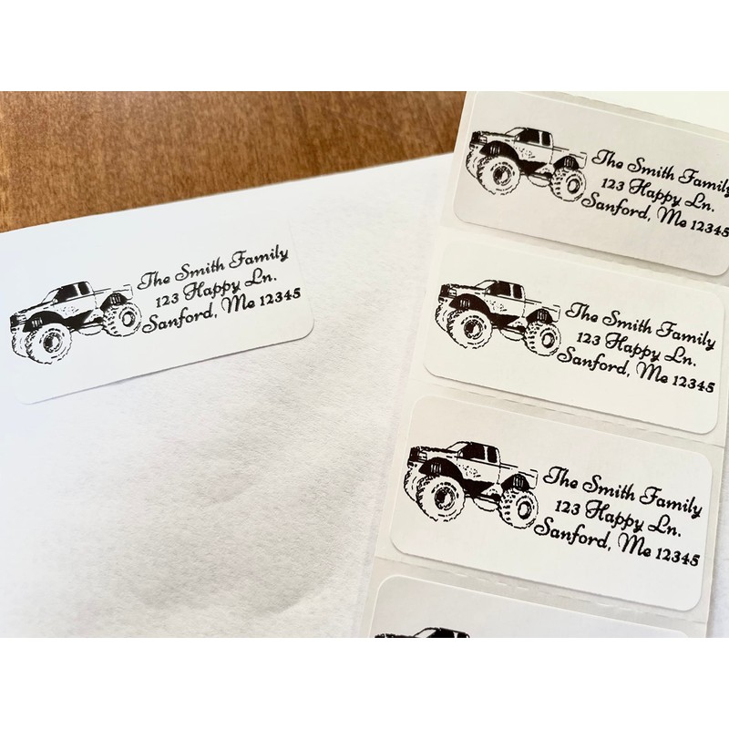 Monster Truck Return Address Labels, Address Stickers, Several Designs, 2x1 inch labels, Several Font Choices