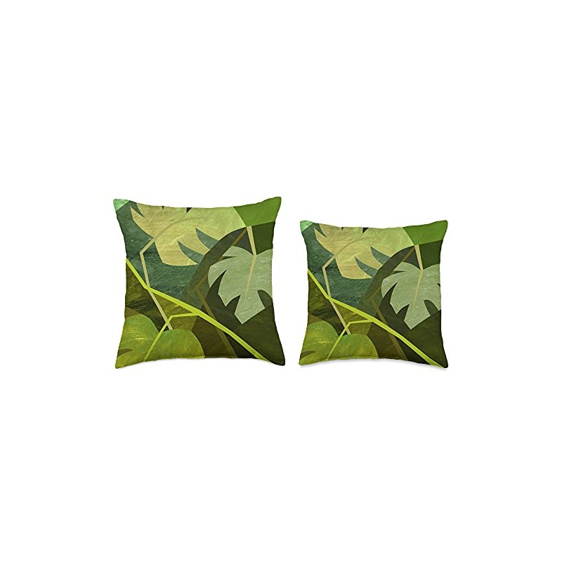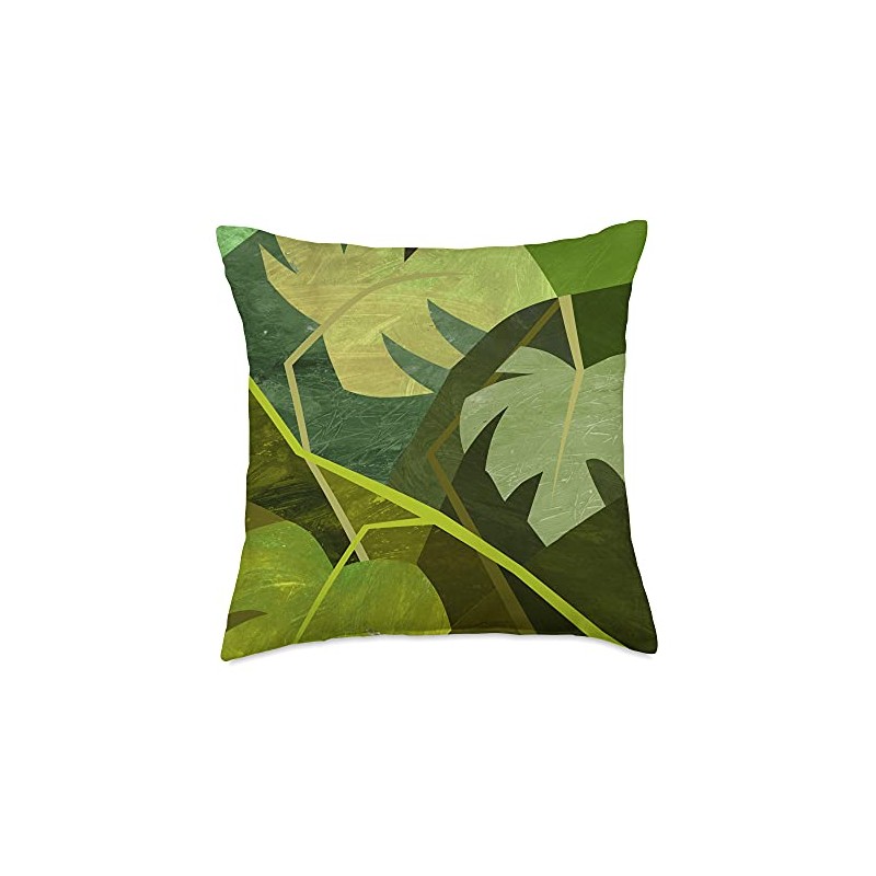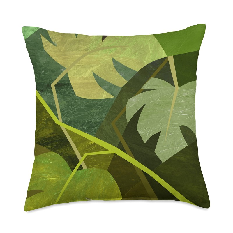 Monstera Deliciosa Cubism Abstract House Plant Variegated Throw Pillow