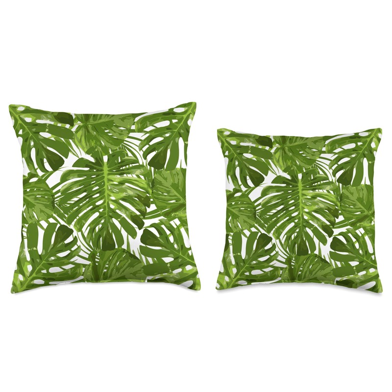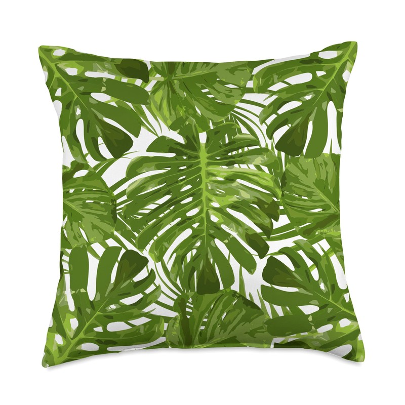 Monstera Deliciosa Leaves Botanical Tropical Plant Monstera Throw Pillow