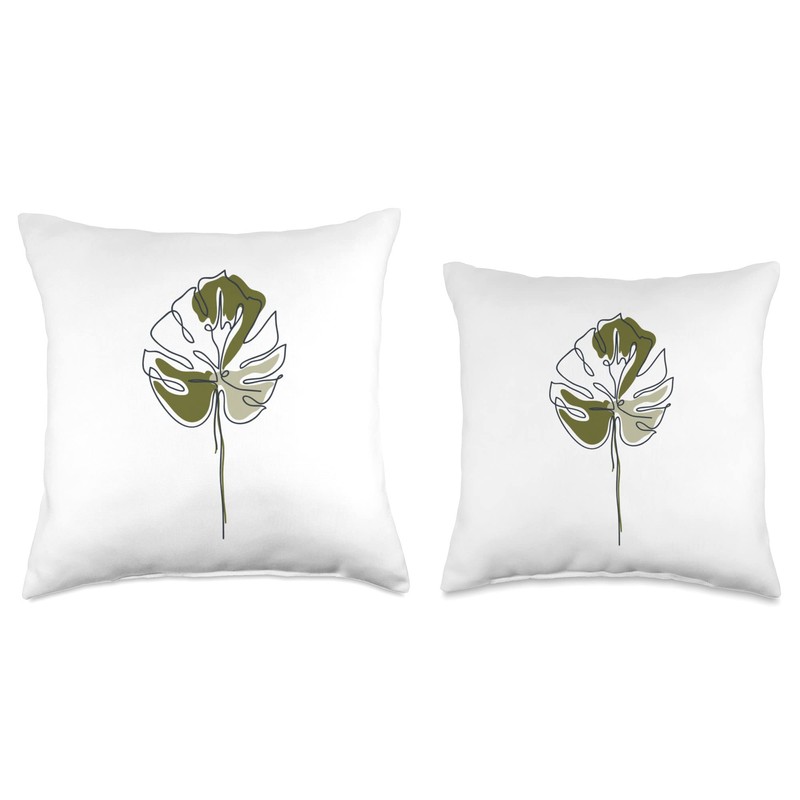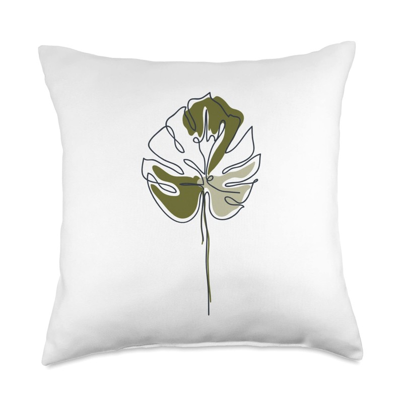 Monstera Leaf Monstera Deliciosa Cheese Plant Line Art Throw Pillow