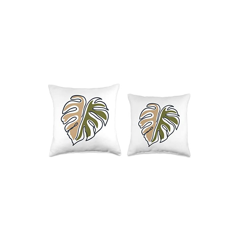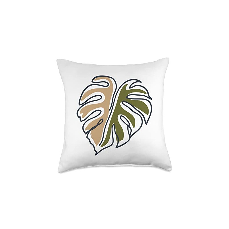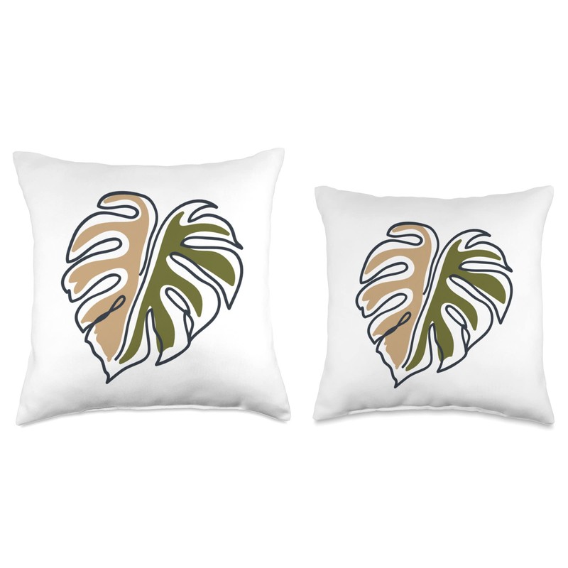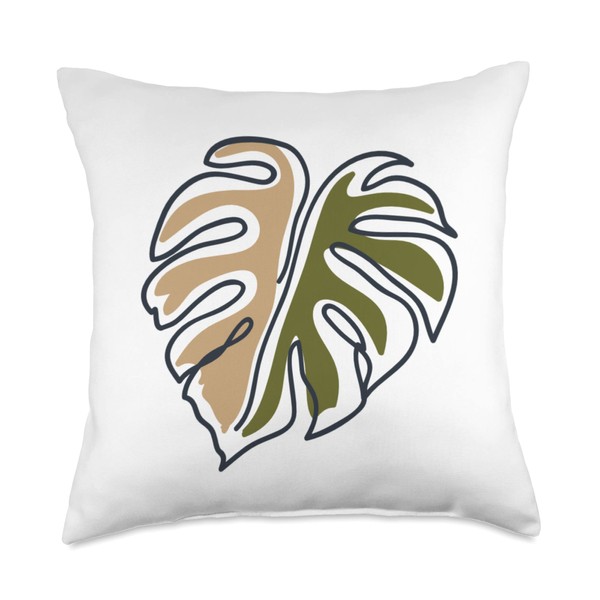 Monstera Leaf Monstera Deliciosa Pastel Line Art Throw Pillow
