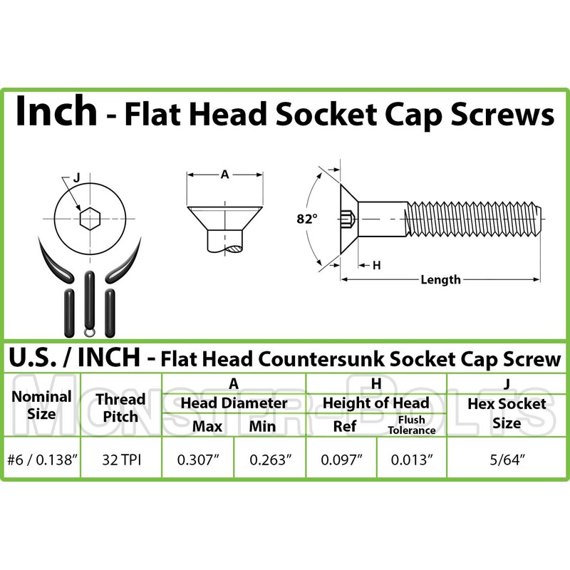 - Type : Flat Head Socket Cap Screw, Hex Drive