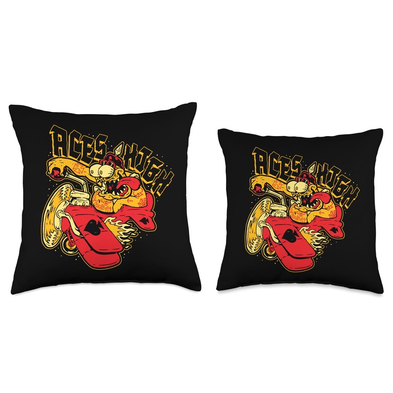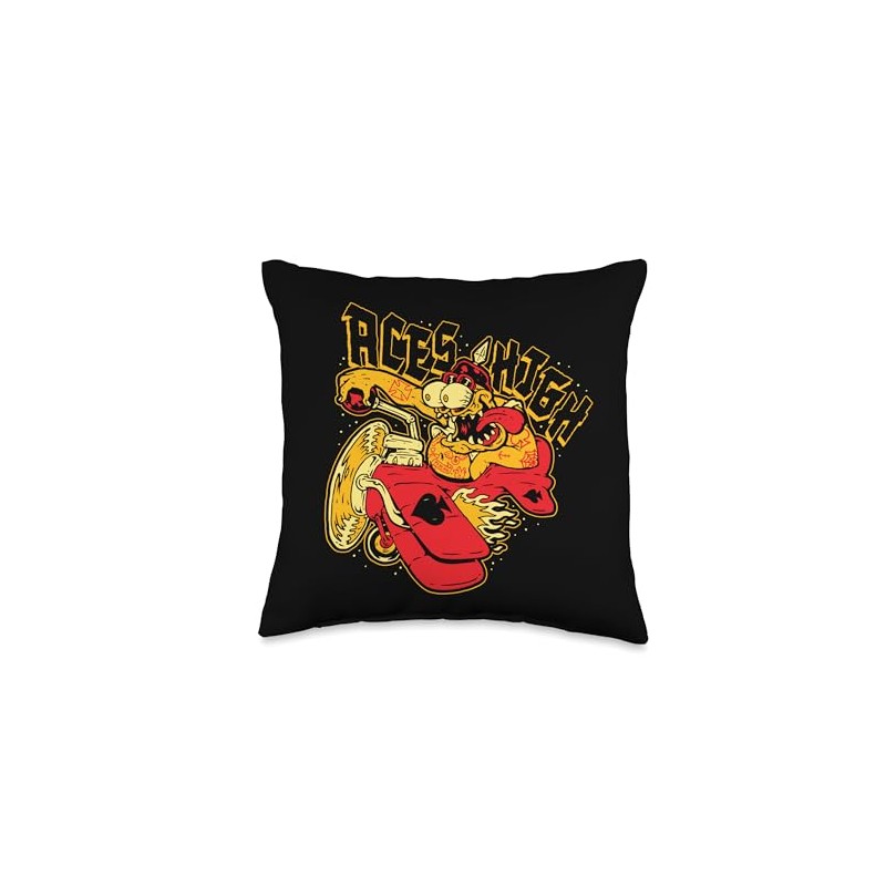 Monsters and Martians Aces High Gasser Hot Rod Plane Fink Monster Garage Art Throw Pillow, 16x16, Multicolor