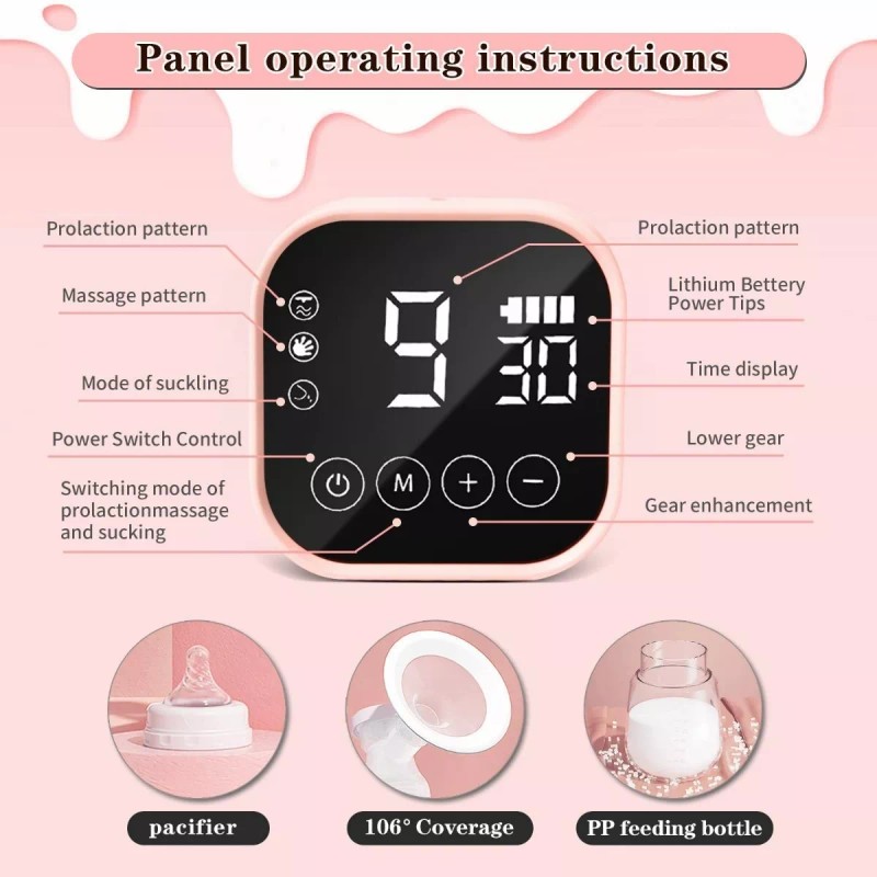 la intensidad se puede ajustar en 9 niveles para masajear eficazmente el seno; en el modo de succión del seno/Biónica, la intensidad se puede ajustar en 9 niveles, lo que imita la velocidad del ritmo de succión del bebé y el tamaño del volumen de succión del bebé.