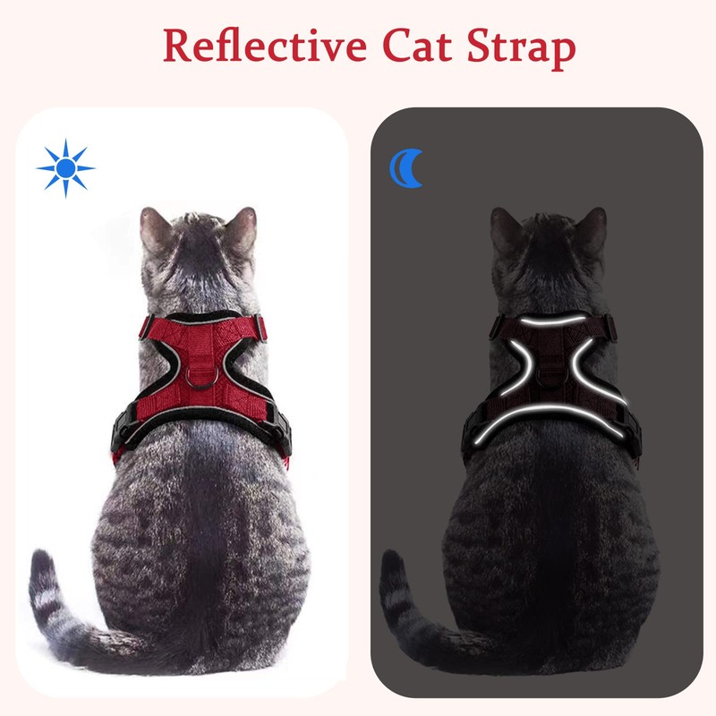 • Bright reflective strips and safer: Our escape proof cat harness is equipped with reflective strips that make it easier for vehicles and passers-by to see your cat at night, improve safety in low light conditions and avoid unfortunate accidents. And this cat leash and harness set also comes with a metal D-ring that allows you to securely attach your leash to the back of the cat harness.