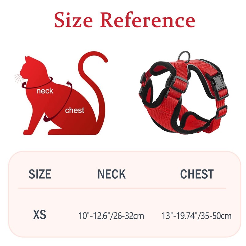 • You will receive: You will receive 1 x cat harness and 1 x 60 cm long cat leash, the cat harness is size XS (neck circumference: 26-32 cm; chest circumference: 35-50 cm; head circumference should not exceed 26 cm). Please measure your kitten accurately and refer to the size chart before purchase to ensure comfort and safety, recommended for kittens.