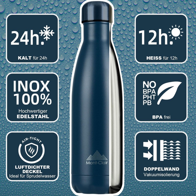 - Practical and portable: available in different sizes and colours to suit your needs. The Mont-Clair thermos bottle is your ideal drinking companion for all your adventures (running, cycling, camping and hiking, etc.)