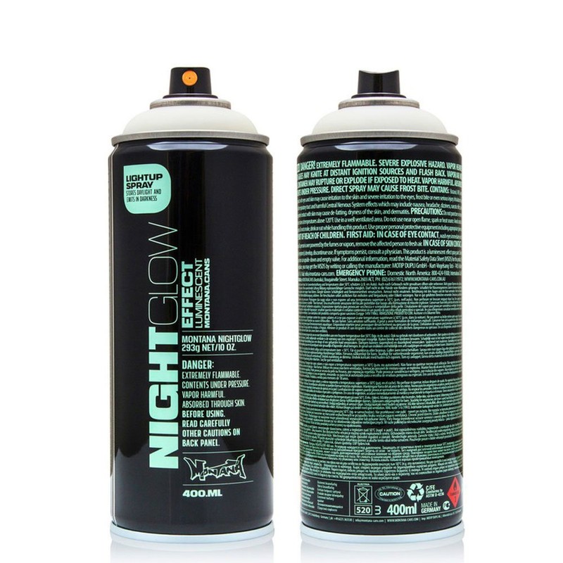 • Montana Nightglow is a high-grade acrylic spray paint which contains luminescent pigments that store light and emit the light in darkness.