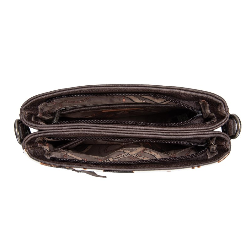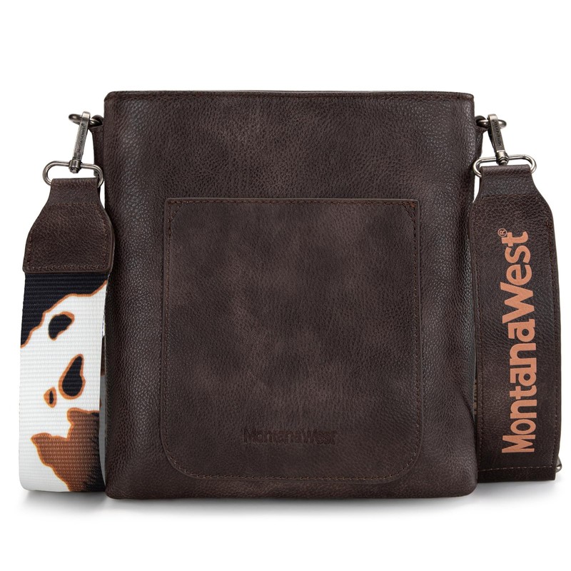 Montana West Crossbody Purse for Women Multi Pocket Crossover Side Purses Medium Size Cross Body Bag with Wide Guitar Strap Travel MWC-184COW