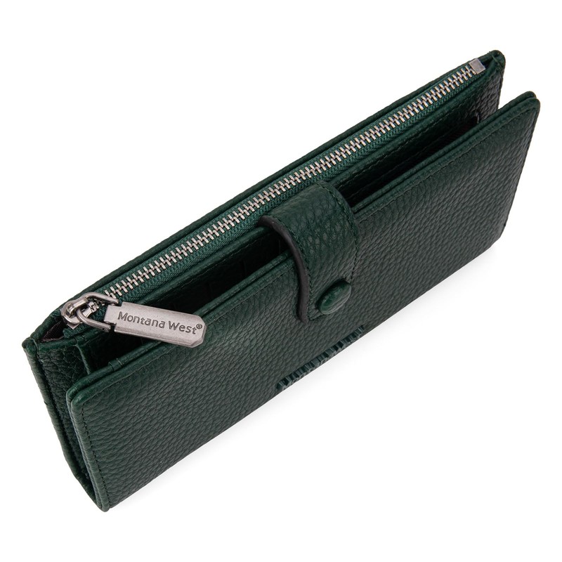 - Montana West women's wallet, long bifold buckle closure, a zipper coin pocket on the side