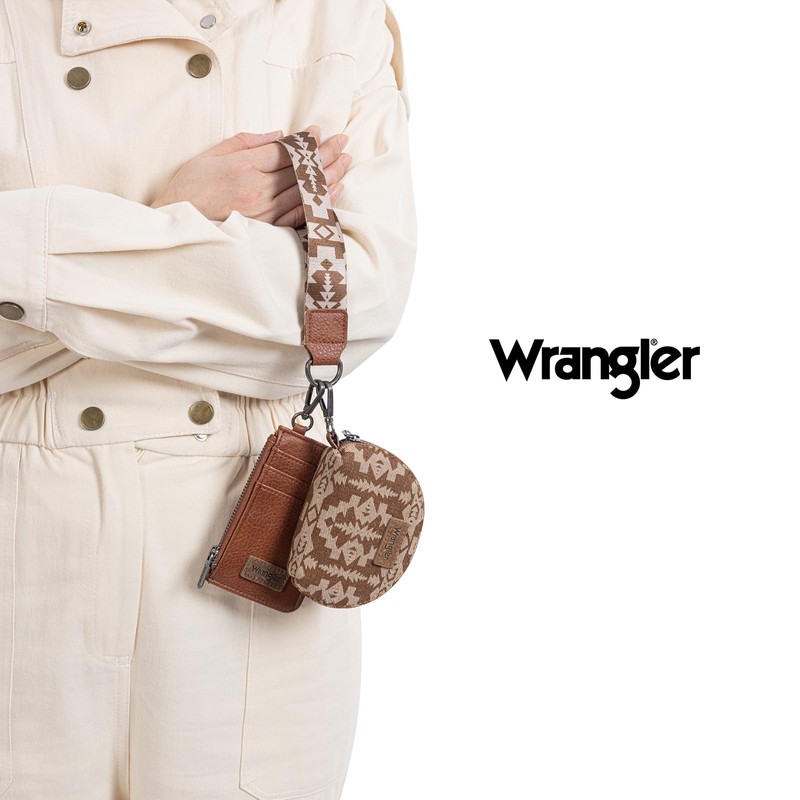 Montana West Wrangler Aztec Keychain Wristlet Wallets for Women Western Dual Pouch Wristlet Credit Card Holder Wallet, Retro Brown, Modern