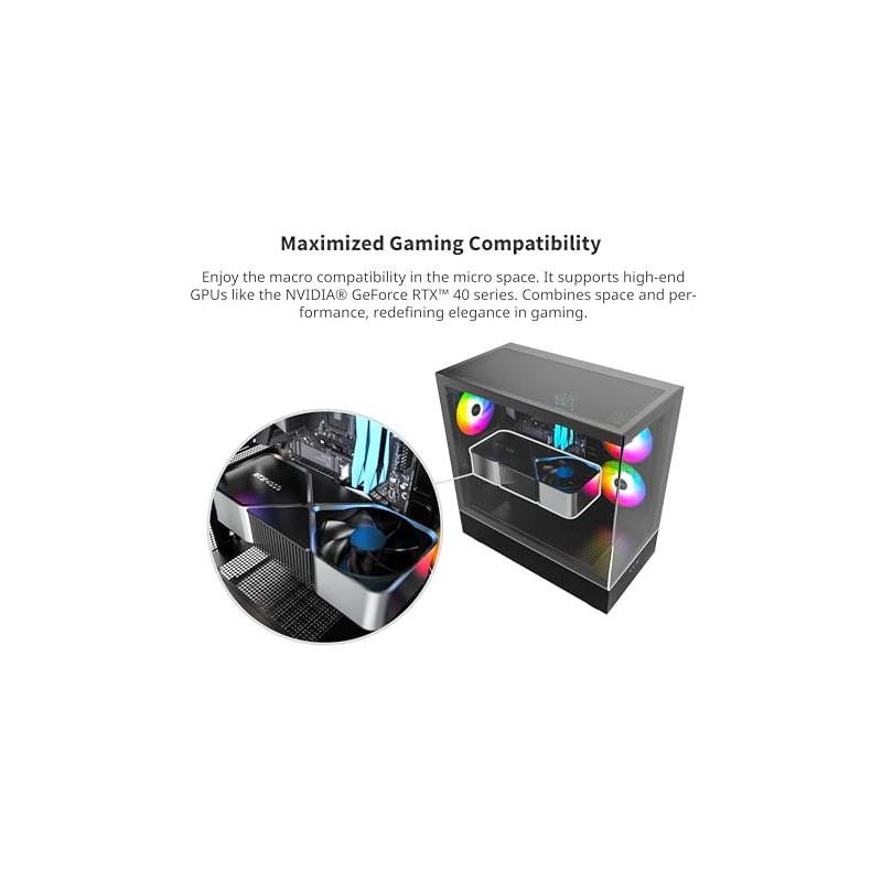 - Accommodates a 360mm radiator at the top and supports high-end GPUs like the 40 series.