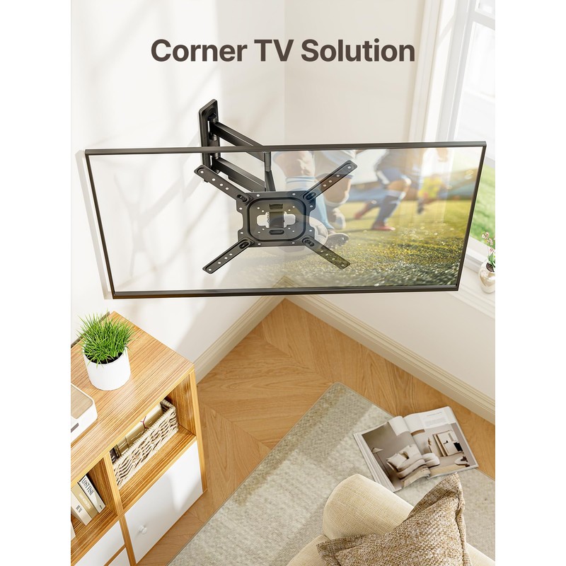 - SAVING SPACE DESIGN: This This wall mount can extend 17" for viewing and retracts back to 2.08" for a low-profile look, alos save some valuable space for you and make your house look neat. This corner TV wall mount enables flexible TV positioning, even in tight corners, while keeping it safely out of reach of kids & pets. Install this TV mount in the bedroom, home gym, kitchen, and more